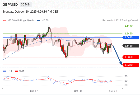 在 1.3440 之下,看跌,目标价位为 1.3390 ,然后为 1.3370 。