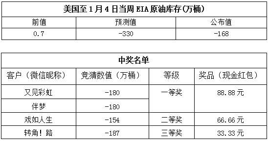 2019年1月第2次“EIA大竞猜”活动的中奖结果已出,获奖信息如下: